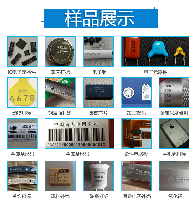 紫外激光打標(biāo)機(jī)的功能特點(diǎn):廣泛應(yīng)用于航天航空器件,集成電路芯片,食品飲料煙草包裝等領(lǐng)域;光束質(zhì)量高,光斑非常小,能實現(xiàn)超精細(xì)標(biāo)刻;熱影響區(qū)域非常小,不會有熱效應(yīng),材料不變形,不燒焦;標(biāo)記速度快,效率高,整機(jī)性能穩(wěn)定,體積小,功耗低;可進(jìn)行條形碼、二維碼、文字圖形,規(guī)則不規(guī)則流水號打標(biāo)。